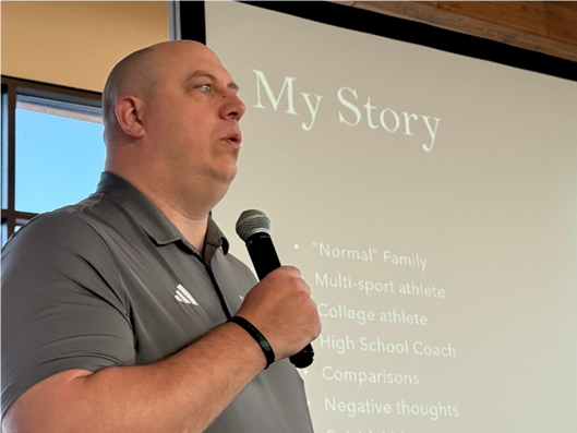 Matt raised our awareness of mental health resources such as Thumbs Up and the Carver County Family Resource Center at the Moravian Church in downtown Chaska. Matt pointed out Slam the Stigma is not faith-based.
